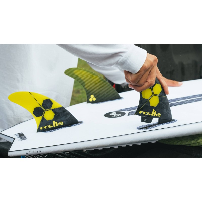 La FCS II AM PC est le fruit de la collaboration entre le shaper légendaire Al Merrick (Channel Islands) et FCS. Ce set de 3 dérives (Tri-Fin) se distingue par son template progressif : des dérives latérales larges pour une accroche maximale et une dérive centrale plus petite pour favoriser les virages serrés et le pivot. Construite avec la technologie Performance Core (PC), elle offre un flex ultra-précis et une légèreté qui boostent la réactivité de votre planche. C'est le choix n°1 pour les surfeurs qui veulent un surf explosif et technique.