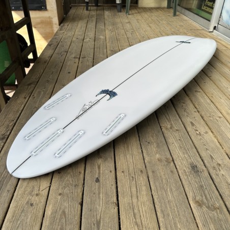 Le système Futures Fins est particulièrement recommandé sur ce litrage (42.5L). La base pleine de la dérive assure une transmission de puissance optimale pour les surfeurs costauds, évitant toute sensation de flottement lors des gros appuis.