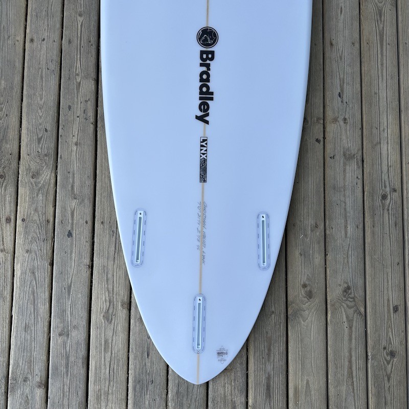 La Bradley Lynx 7'0 est la taille "charnière" de la collection. Elle offre ce sentiment de sécurité et de flottaison nécessaire pour passer les sections molles, sans jamais se sentir encombrante sous le bras ou sous les pieds. Christiaan Bradley a réussi le pari de créer une planche qui génère de la vitesse de manière autonome. C'est l'outil parfait pour le surfeur qui ne veut plus se poser de questions : que les vagues fassent 50cm ou 1m50, la Lynx 7'0 répond présente avec une fluidité déconcertante.